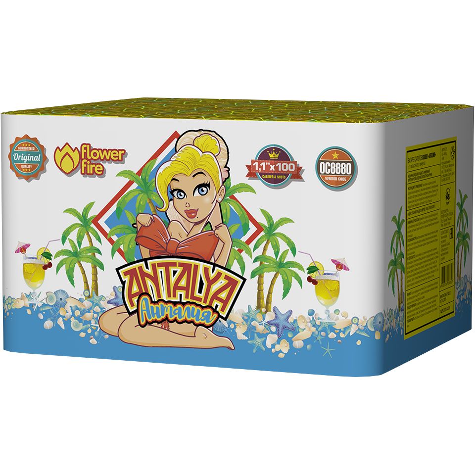 Фейерверк Анталия Алапаевск ОС8880 купить 17 200 руб. 100 залпов Огненный Цветок заказ пришёл магазин заказать доставку на дом в Алапаевске | alapaevsk.torgsalut.ru