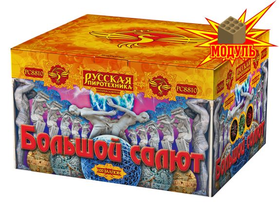 Фейерверк Большой – это еще одна восхитительная батарея салютов из каталога пиротехники магазина TorgSalut. Красочная картина фейерверка вам гарантирована – количество залпов 100 салюта Большой говорит о многом. Перед тем как купить фейерверк, можете посмотреть фото и видео салюта РС881-М Большой. Со списком уникальных пиротехнических эффектов фейерверка вы можете ознакомиться по вкладке ДОПОЛНИТЕЛЬНО.